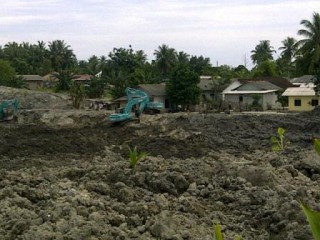 Terlihat juga alat berat masih berada dilokasi melakukan aktivitas penggalian. Sejumlah pekerja tampak sibun membuat sakan untuk mencuci timah walaupun belum terlihat ada mesin dilokasi tersebut.