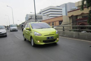 Dengan tajuk, “Rainbow Fun Driving” kami diajak berkeliling Jakarta untuk merasakan sensasi lincahnya Mirage kala membelah kemacetan. Dan terbukti mobil berpanjang total 3.710 mm ini cukup lincah kala menerabas kemacetan pada rute Pulomas-Kuningan-Menteng-Kemayoran-Senayan yang diberikan.