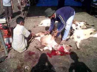 Agar Mudah Dikuliti, Kambing Dikembungkan dengan Angin