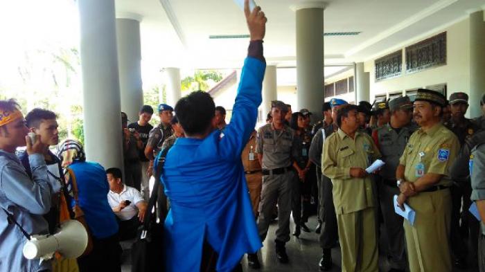 BANGKAPOS.COM,BANGKA-- Sejumlah aktivis Pergerakan Mahasiswa Islam Indonesia (PMII) di Gedung kantor Gubernur Bangka Belitung, Rabu (12/1/2016) pagi tadi sempat melakukan orasi.