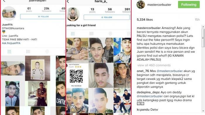 Salah satu akun dengan tulisan 'Looking for a girl friend' merupakan akun palsu dari akun asli polisi dengan nama Juan Haspari.