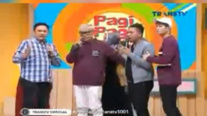 Sejumlah orang termasuk Angel Lelga berusaha menahan Vicky yang kemudian harus keluar dari studio.
