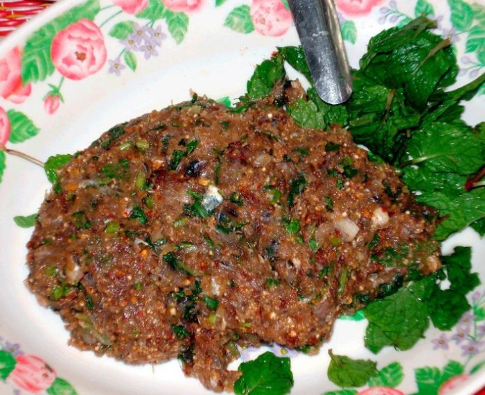 Makanan berbahaya ini terbuat dari ikan mentah cincang, air jeruk nipis, saus salad pedas, dan sedikit semut merah.