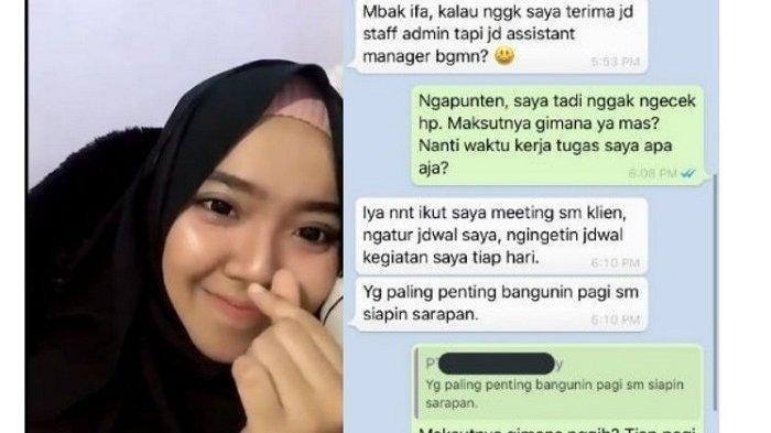 Dalam tangkapan layar percakapan WhatsApp tersebut, pemilik perusahaan justru menghubungi Ifa untuk melamarnya.