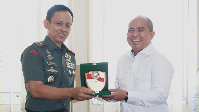 Komandan Komando Resor Militer (Korem) 045/Garuda Jaya Brigjen TNI Ujang Darwis melawat ke kantor Wali Kota Pangkalpinang, Rabu (20/4/2022) siang.