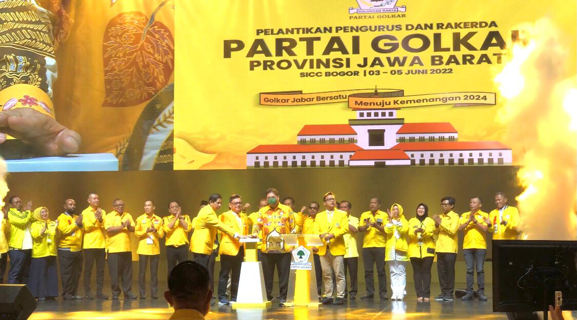 “Kalau sinergi dari hati tidak ada yang bisa memecah kita, tidak ada yang bisa bayar kita, tidak ada yang bisa nakut-nakutin kita, tidak ada satu kekuatanpun yang bisa melawan soliditas kita,” tegas Airlangga saat memberi pidato di Rakerda DPD Golkar Jawa Barat, di SICC Sentul Bogor, Jumat (3/6/2022).