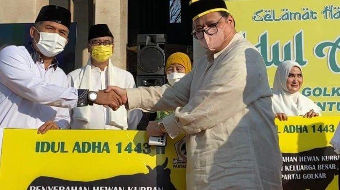 BANGKAPOS.COM, JAKARTA - Ketua Umum DPP Partai Golkar Airlangga Hartarto membagikan langsung 93 sapi dan 48 kambing kurban kepada masyarakat yang membutuhkan saat Hari Raya Idul Adha 2022.