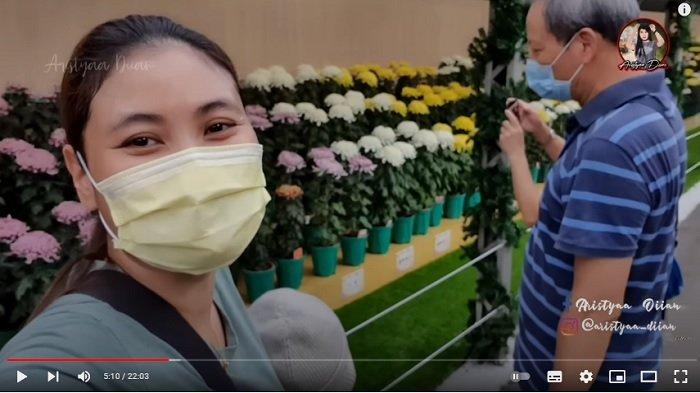 Ya, gadis cantik asal Trenggalek itu diajak majikan dan anak majikannya untuk melihat-lihat suasana pameran bunga krisan saat musim gugur hampir berakhir.