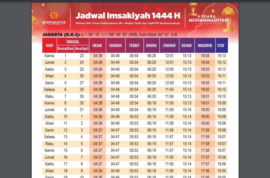 Jadwal Imsakiyah 2023 Jakarta