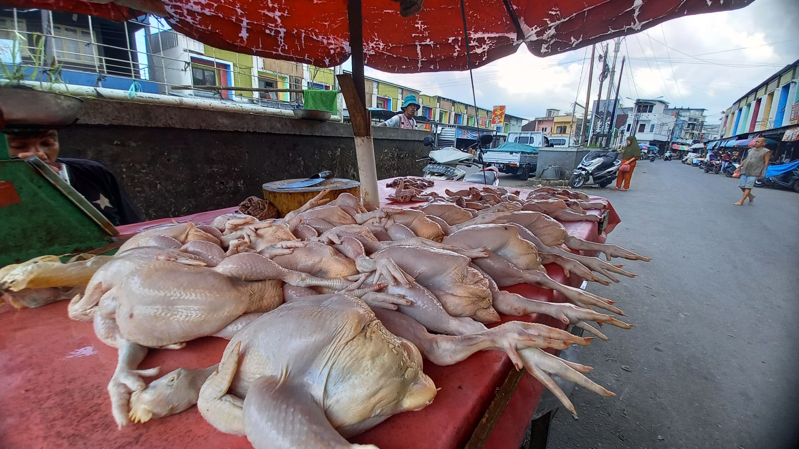 Pantauan Bangkapos.com di pasar induk pembangunan Kota Pangkalpinang, harga ayam ras bersih atau potong kini seharga Rp45.000 dan ayam ras bulat Rp40.000.