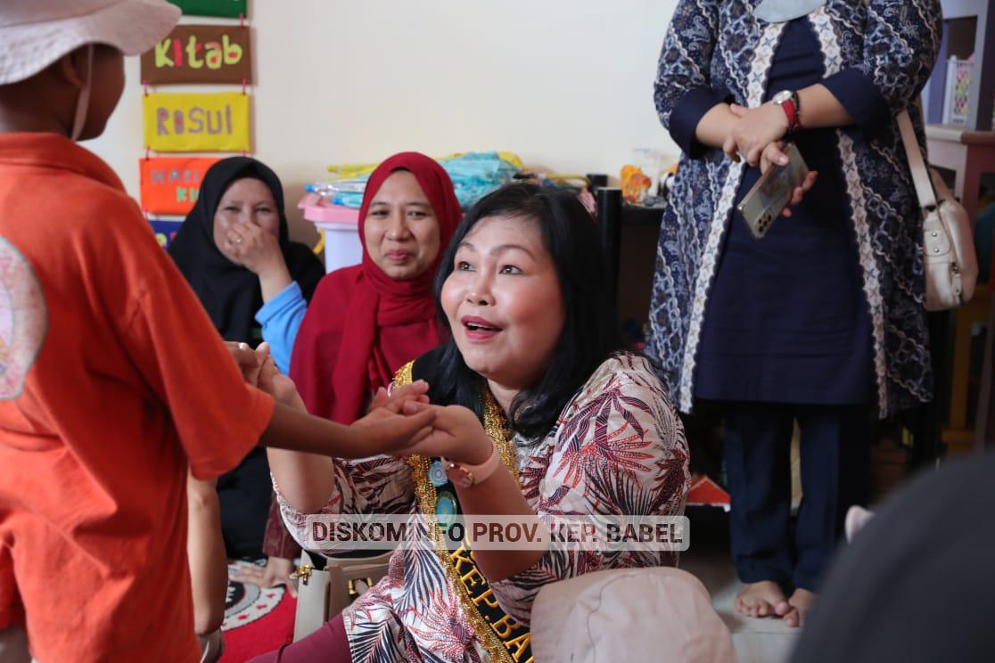 Namun anak-anak di PAUD Ananda Gemilang, TK Maria Goretti, TK Aisyiyah, dan PAUD Permata Bunda tampak sudah akrab dengan istri orang nomor satu di Kep. Babel tersebut.