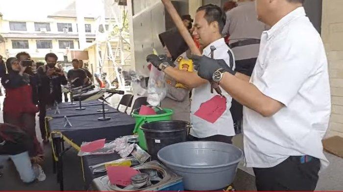 BANGKAPOS.COM - Pisau, cabngkul, ember hingga kompor jadi barang bukti yang digunakan 2 pelaku mutilasi pada mahasiswa asal Pangkalpinang yang terjadi di Yogyakarta. Saat ini polisi masih mendalami motif pada pelaku.