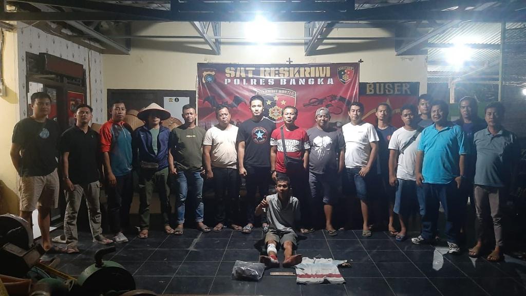 Warga Jalan Bambang Utoyo Palembang Provinsi Sumatera Selatan berhasil dibekuk oleh Tim Gabungan dari Tim Kelambit Buser Polres, Polsek Pemali dan Tim Opsnal Sat Reskrim Polres Bangka di Pelabuhan Tanjung Kalian Muntok Kabupaten Bangka Barat,