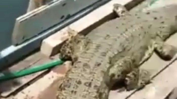 BANGKAPOS.COM, BANGKA -- Sebuah video menunjukkan adanya seekor buaya Muara berukuran cukup besar naik ke area rumah panggung milik warga di kawasan Pangkalarang, Kecamatan Pangkalbalam, Kota Pangkalpinang.