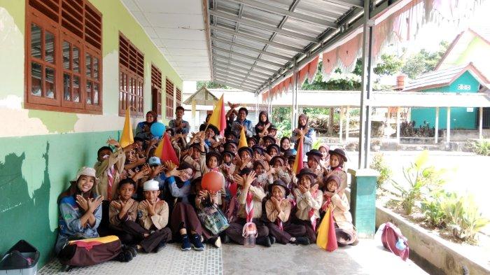 Para warga Racana pun disambut dengan suka cita oleh adik-adik dari MIN 3 Bangka.