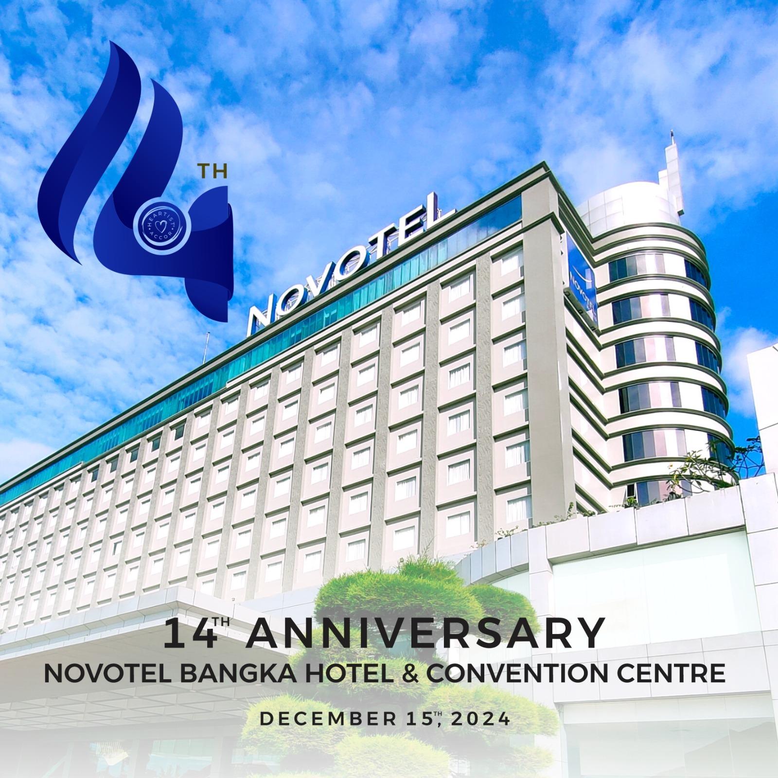 Novotel Bangka Hotel & Convention Centre akan merayakan ulang tahun yang ke-14 secara resmi pada tanggal 15 Desember 2024.