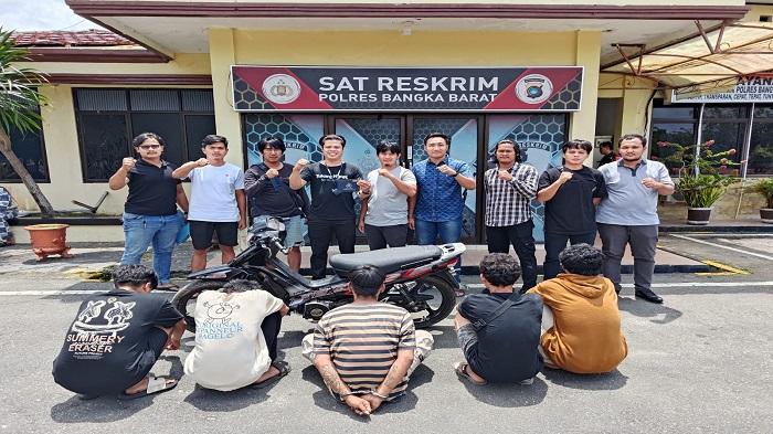 Komplotan tersebut, berjumlah lima orang terduga pelaku pencurian dan penadah/penerima kendaraan bermotor (curanmor) asal Mentok dan Kelapa, Bangka Barat.