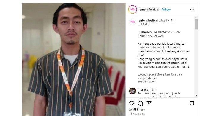Kabar Dian Permana membawa kabur uang konser diungkap lewat instagram oleh pihak panitia Lentera Fest yang juga merasa dirugikan.