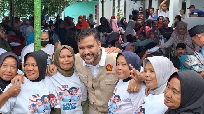 Mengenakan kaus putih dibalut rompi warna krem, kehadiran Harwendro membuat warga yang hadir terutama kaum perempuan histeris....