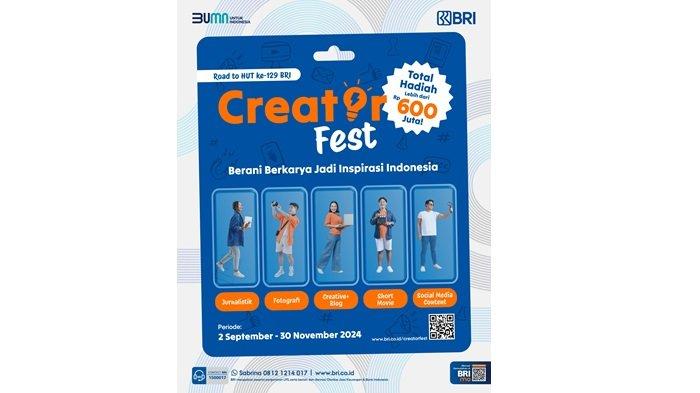 Sambut hari jadi yang ke-129, BRI gelar "BRI Creator Fest 2024" yang bertujuan untuk menggali potensi kreativitas dari berbagai kalangan masyarakat.