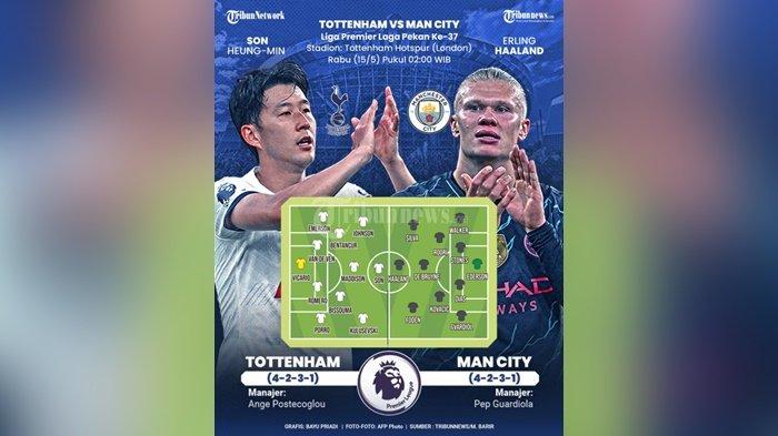 Prediksi Line Up Tottenham vs Man City malam ini di Liga Inggris, berikut prediksi skor, head to head dan link live streaming