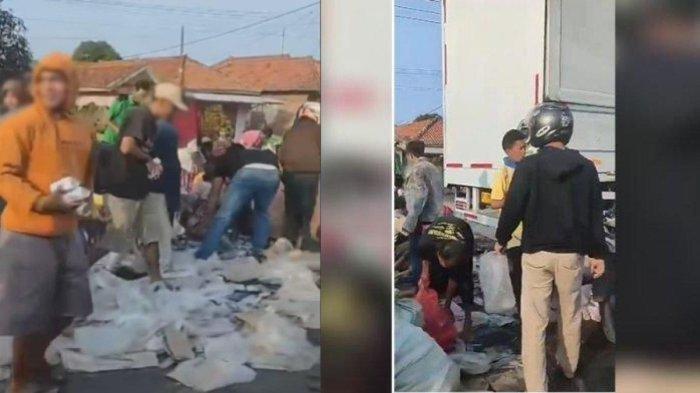 Truk muatan susu bear brean kecelakaan, viral warga bukannya menolong malah menjarah isi muatan truk yang jatuh ke jalan