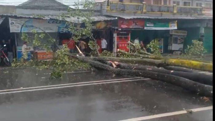 Kejadian pohon tumbang paling parah terjadi di Jalan Solihin GP atau Jalan Sungai Selan depan SDN 42 Pangkalpinang, Kelurahan Asem, Kecamatan Rangkui